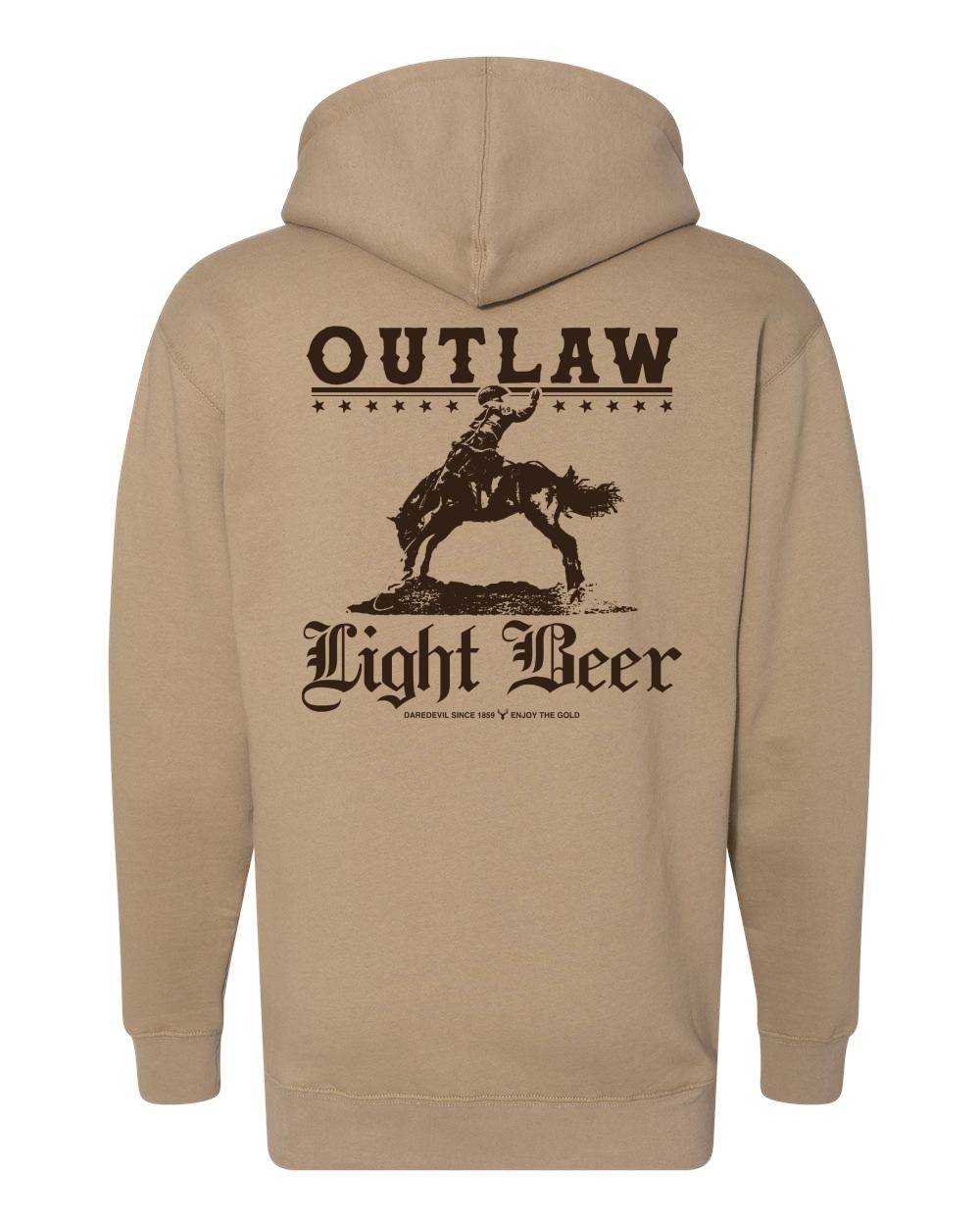 Built for cooler nights, tailgates, and late beers around the fire, this hoodie delivers all-day comfort with a relaxed fit and durable construction. Finished with Outlaw Light branding, it’s equal parts statement piece and everyday staple.